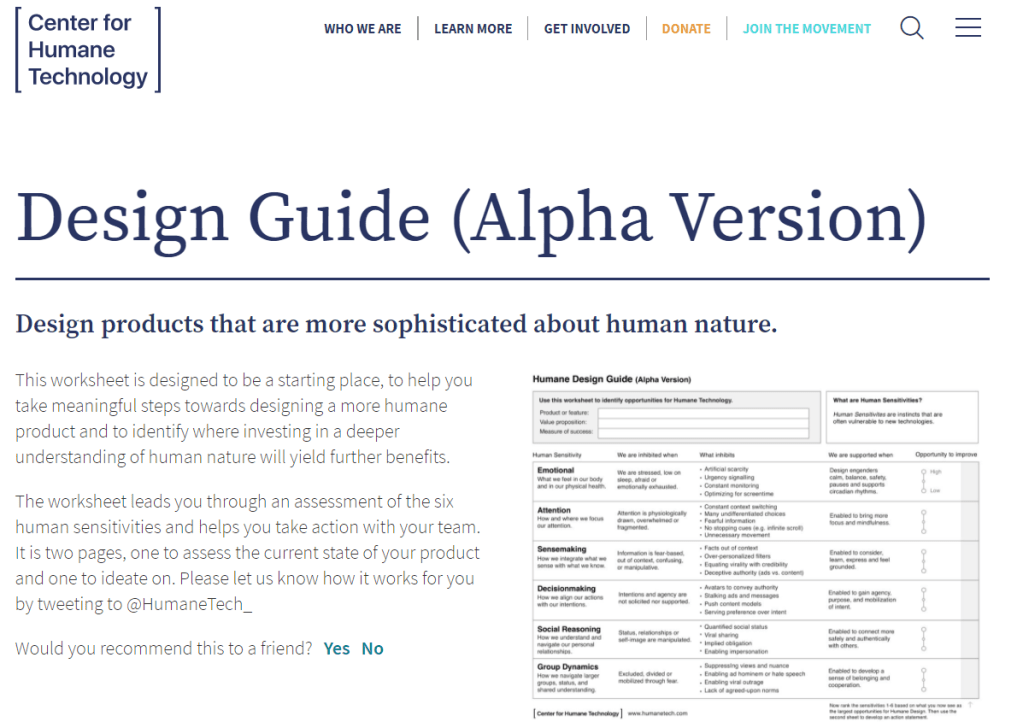 Although technology enables all industries, there is limited research that examines potential negative impacts of emerging technology, and whether or not a particular technology implementation is actually beneficial to its users. Humane Design is an approach to IT systems design that aims to support those wanting to prioritize human needs in human-computer interactions. The Centre for Humane Technology has defined Humane Design along six instinctive human sensitivities that are vulnerable to new technologies. These sensitivities are labeled: Emotions, Attention, Sense-making, Decision-making, Social Reasoning, and Group Dynamics (Humane Design Guide, 2020).